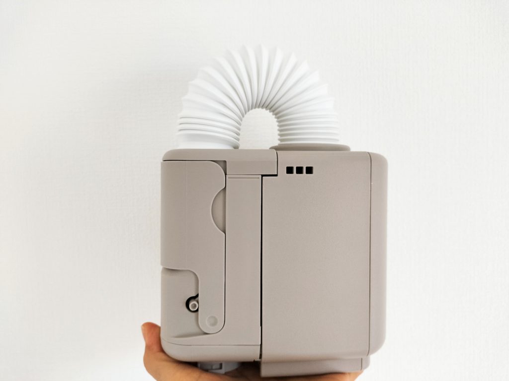 この乾燥機は、横幅も縦幅もスマホサイズで、重さ700グラムと、小型で軽量。