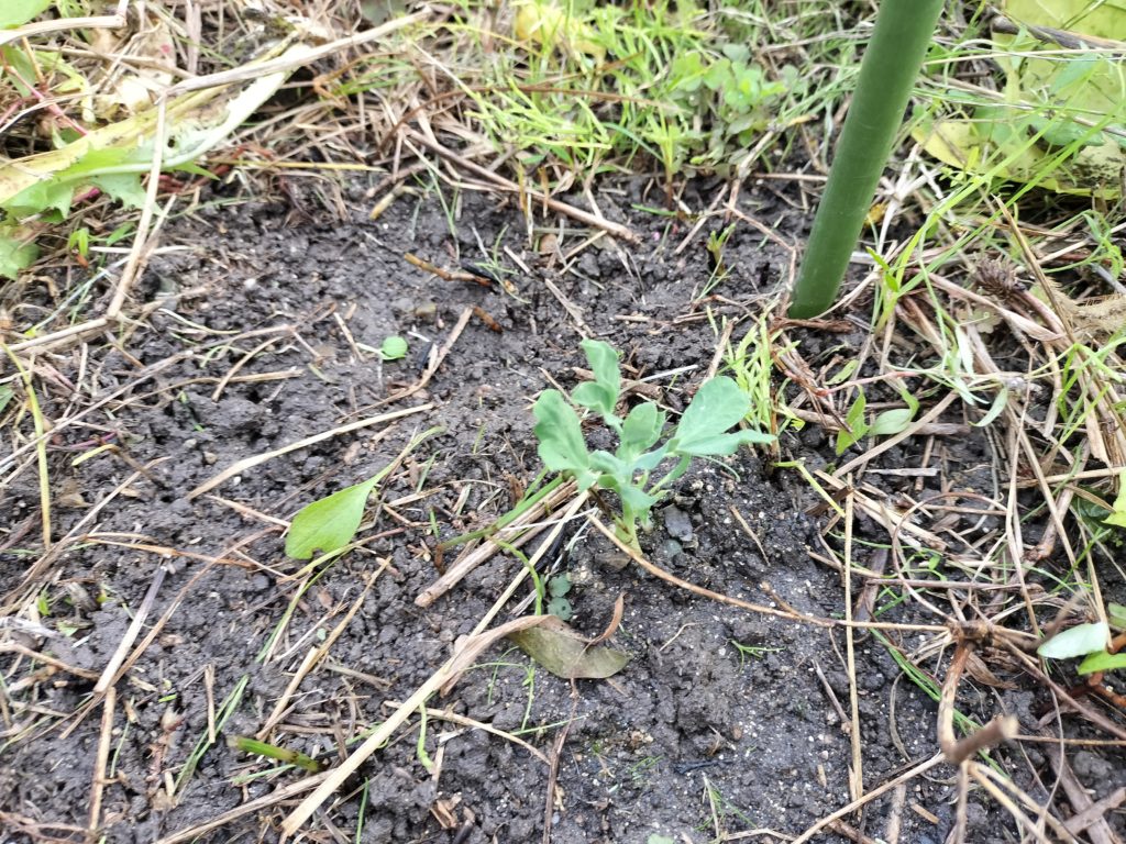 まず最初に、つるなしエンドウの苗の植え付けをしました。